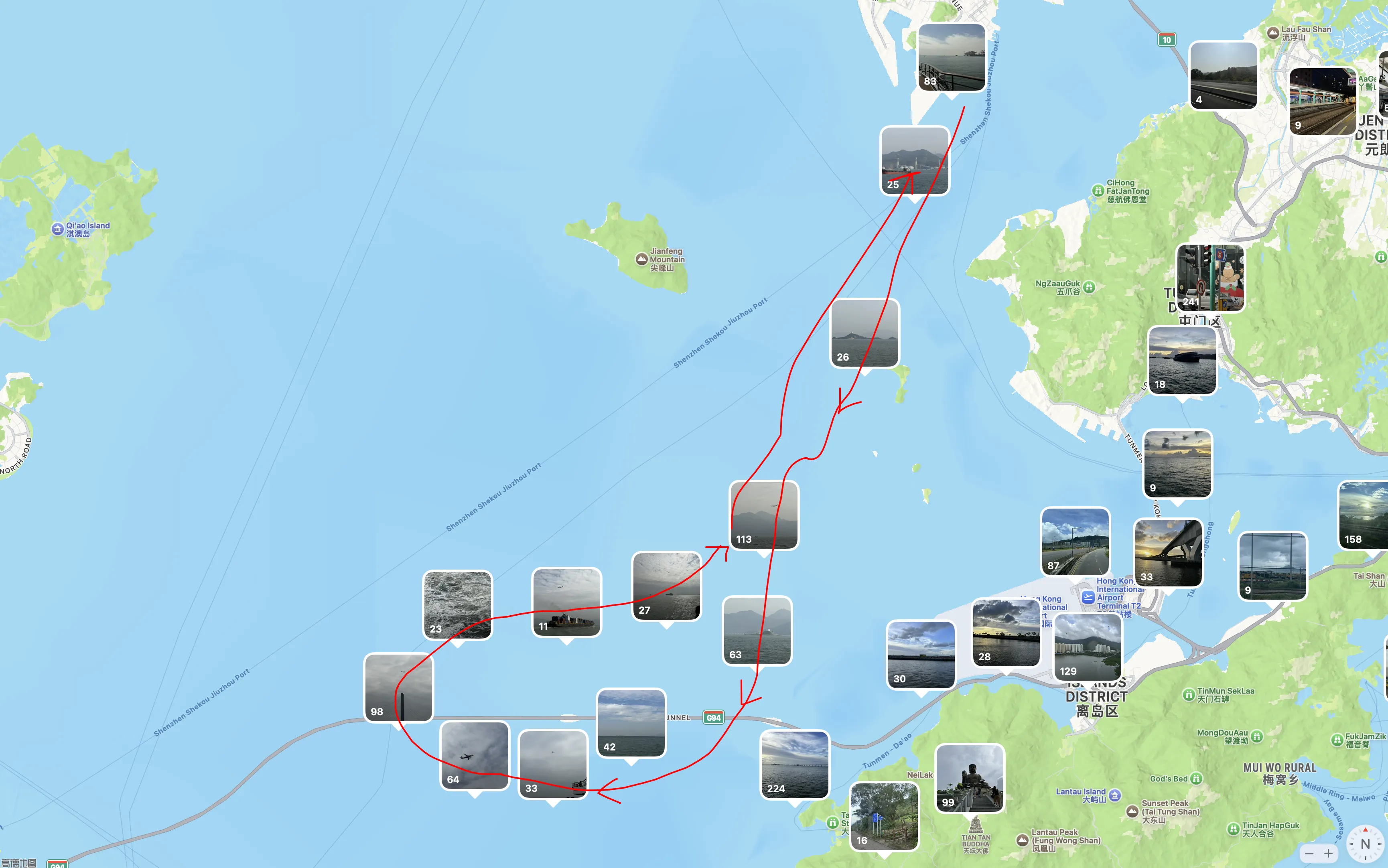 公司部门团建去的,主要是打卡观光港珠澳大桥。大致航线如下。全程 3 小时