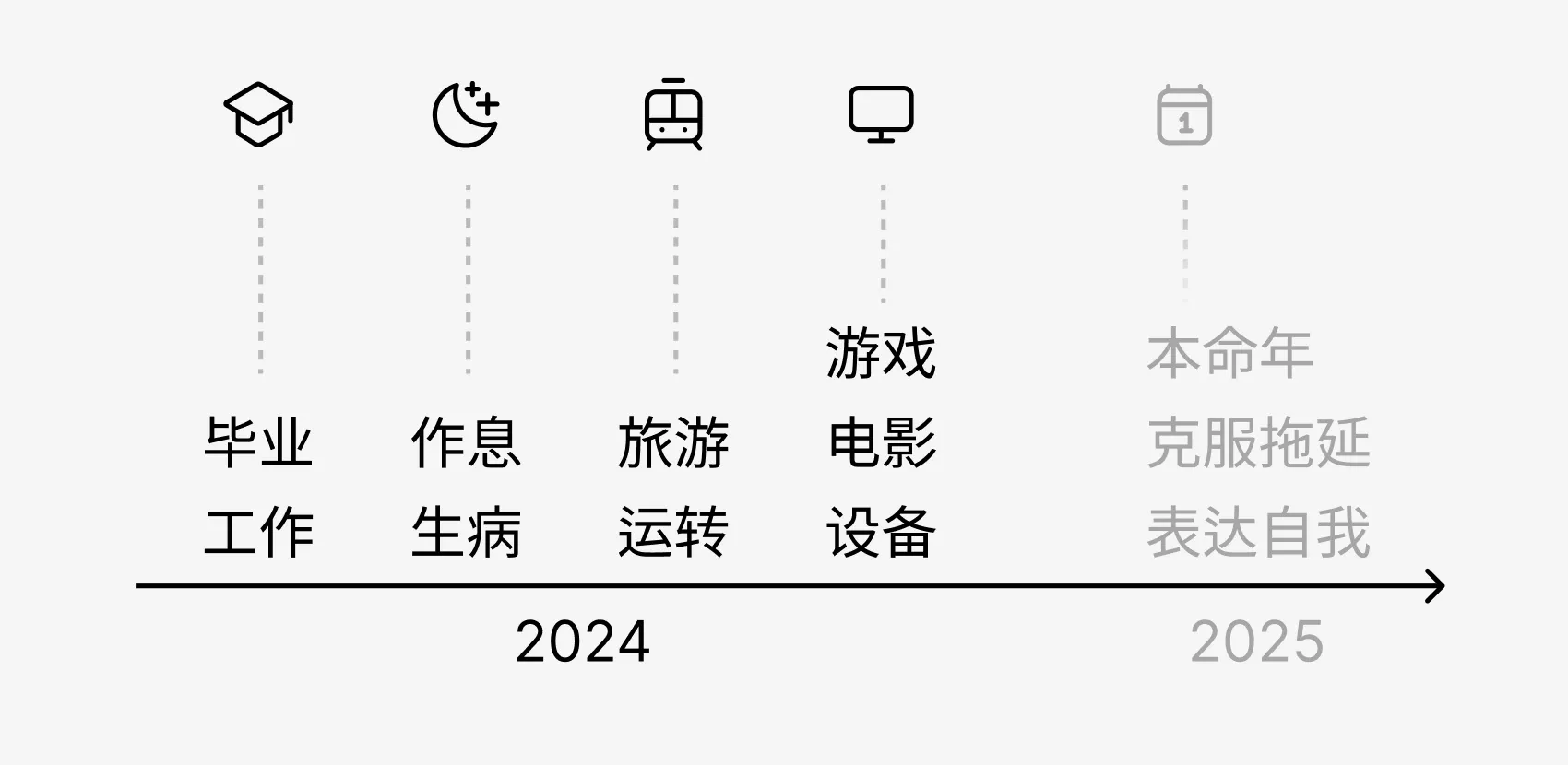 2025 年是蛇年,同时也是我的本命年。如果能把 2025 年过得更好就好了。思考后,有两个问题待解决:拖延和不善表达