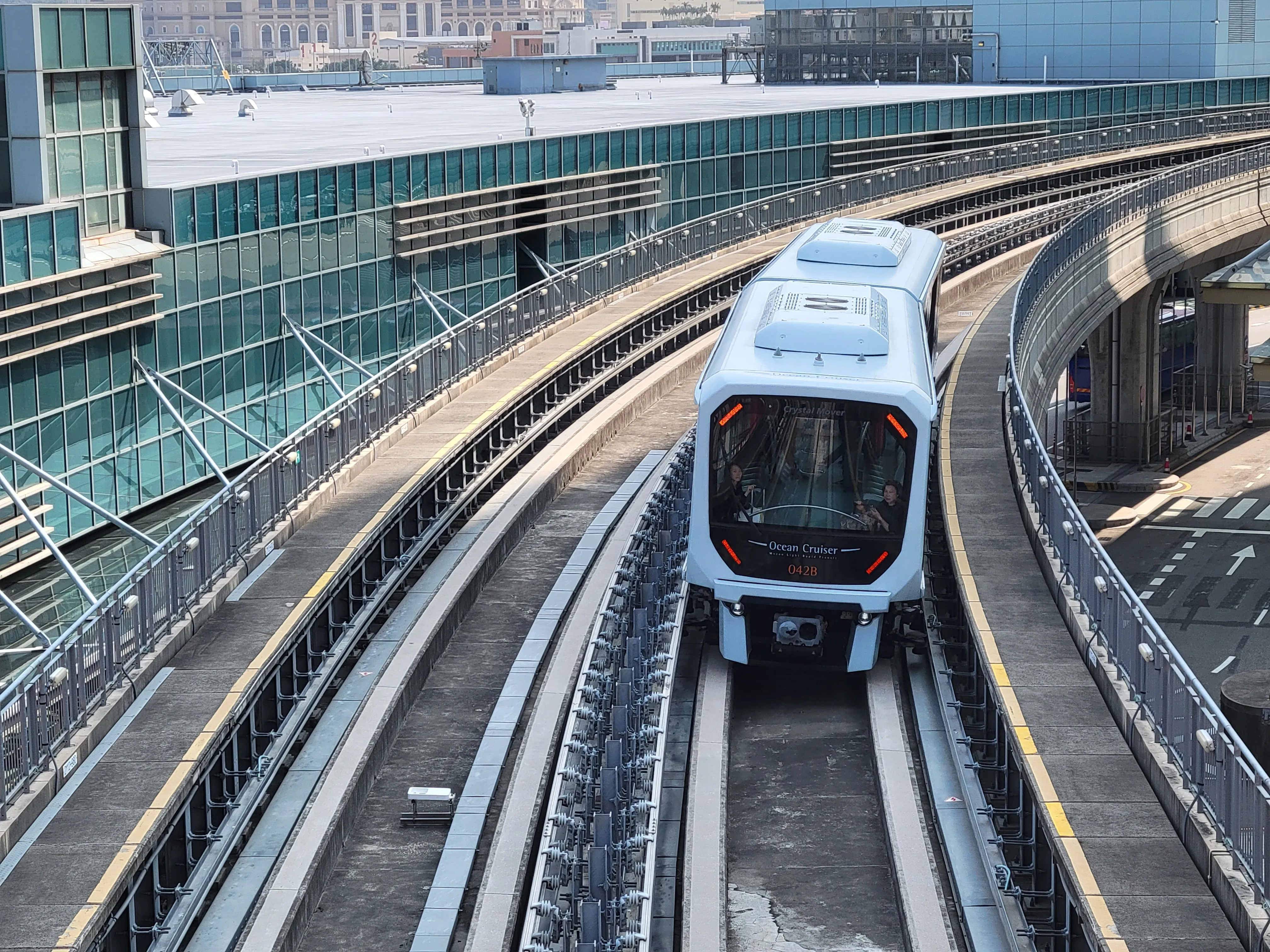 APM,游客观光车 。看着搭乘人数不多,间隔 10 分钟一班,站台也没有出现人数堆积的情况。不知道有没有方便到本地居民的出行