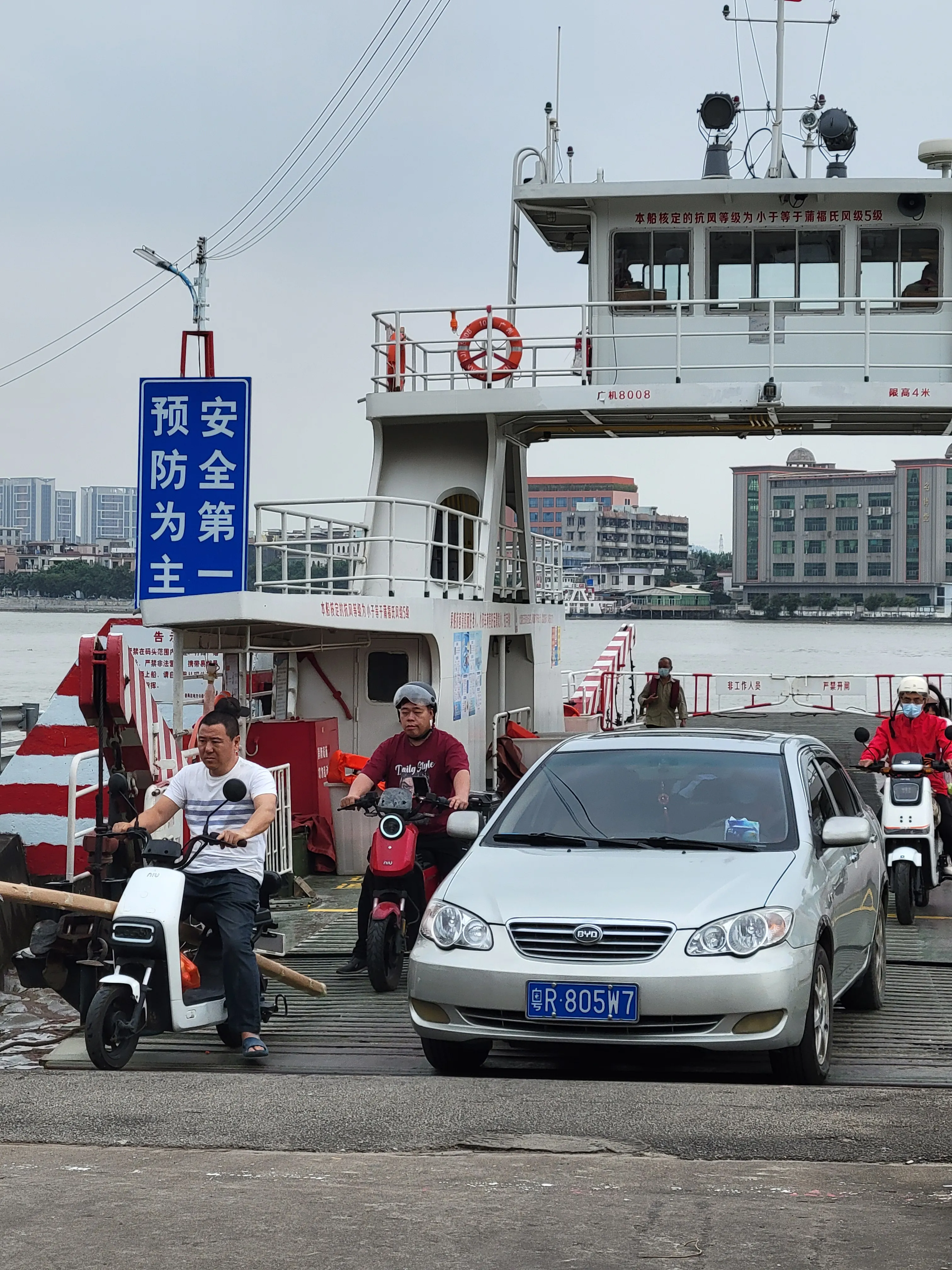 1 元就能坐轮渡跨江。即使有 4 号线连接大学城南和新造,但来往两岸的村民和外卖员还是不少的