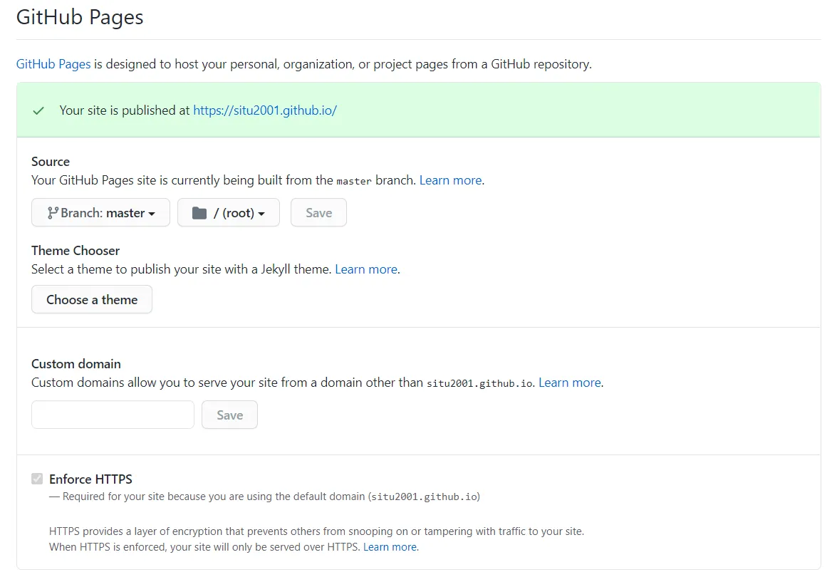 主要是设置一下 source folder 和 branch 之类的,可以直接加一个 HTTPS,也支持自定义域名
